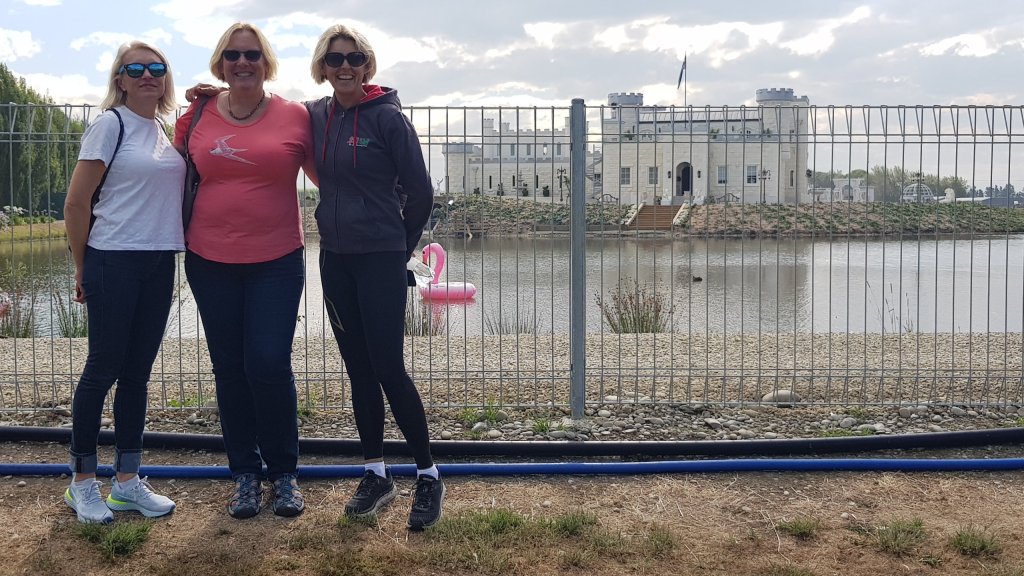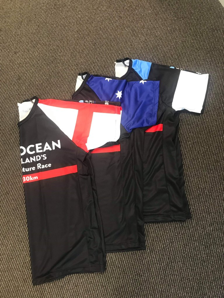 On arrival at Oamaru, we found our way to the Opera House (yep, it has one 😜) where check-in and race package pickup was taking place. We immediately bumped into Jaime and also Jan Taylor, another friend and survivor from MdS two years ago. We also met Ange, who had very kindly arranged to have souvenir race shirts made up for us, with our names printed and our country’s flag on the sleeve.
