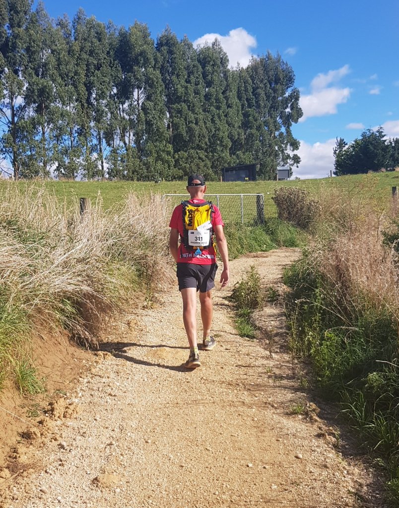 At 8.30am, the leaders were off! As per the previous day, I ran comfortably for the first 200m. Then the gravel road turned downhill, and the knee pain was back 😫 Within a minute the whole field had passed me, and only the sweepers remained behind. They caught me soon after, and very kindly sympathised with my situation. I tried running again as the road flattened out, and found I was able to implement a kind of geriatric shuffle, alternating with walking. As always, I was conscious of pace, and thought if I could maintain 7.5km per hour (8:00/km pace), I might not be the last to finish. I did not want to be the last to finish!